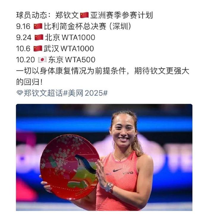不过,郑钦文团队强调,所有这些安排都以复出后参赛的身体康复情况为前提条件,目前只是初步的一个安排。